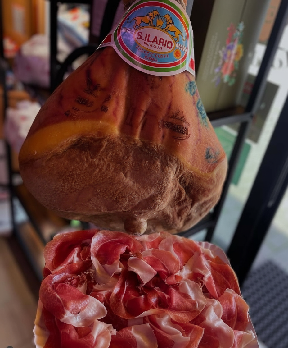 Il Prosciutto Crudo Sant’Ilario, stagionato oltre 24 mesi, rappresenta oggi il miglior prosciutto crudo d’Italia per qualità e prestigio. Ottenuto da cosce selezionate di suino italiano e lavorato seguendo antiche tecniche artigianali, si distingue per la sua carne compatta, il profumo intenso e il sapore armonioso. La lunga stagionatura conferisce note dolci e aromatiche, con un gusto elegante e persistente che conquista anche i palati più esigenti. La fetta, di colore rosso vivo e contornata da grasso bianco, esprime tutta l’autenticità della tradizione salumiera parmense ed è perfetta in purezza o accompagnata da pane rustico e vini tipici. Una scelta d’eccellenza per chi desidera portare a tavola il vero protagonista dei grandi salumi italiani.